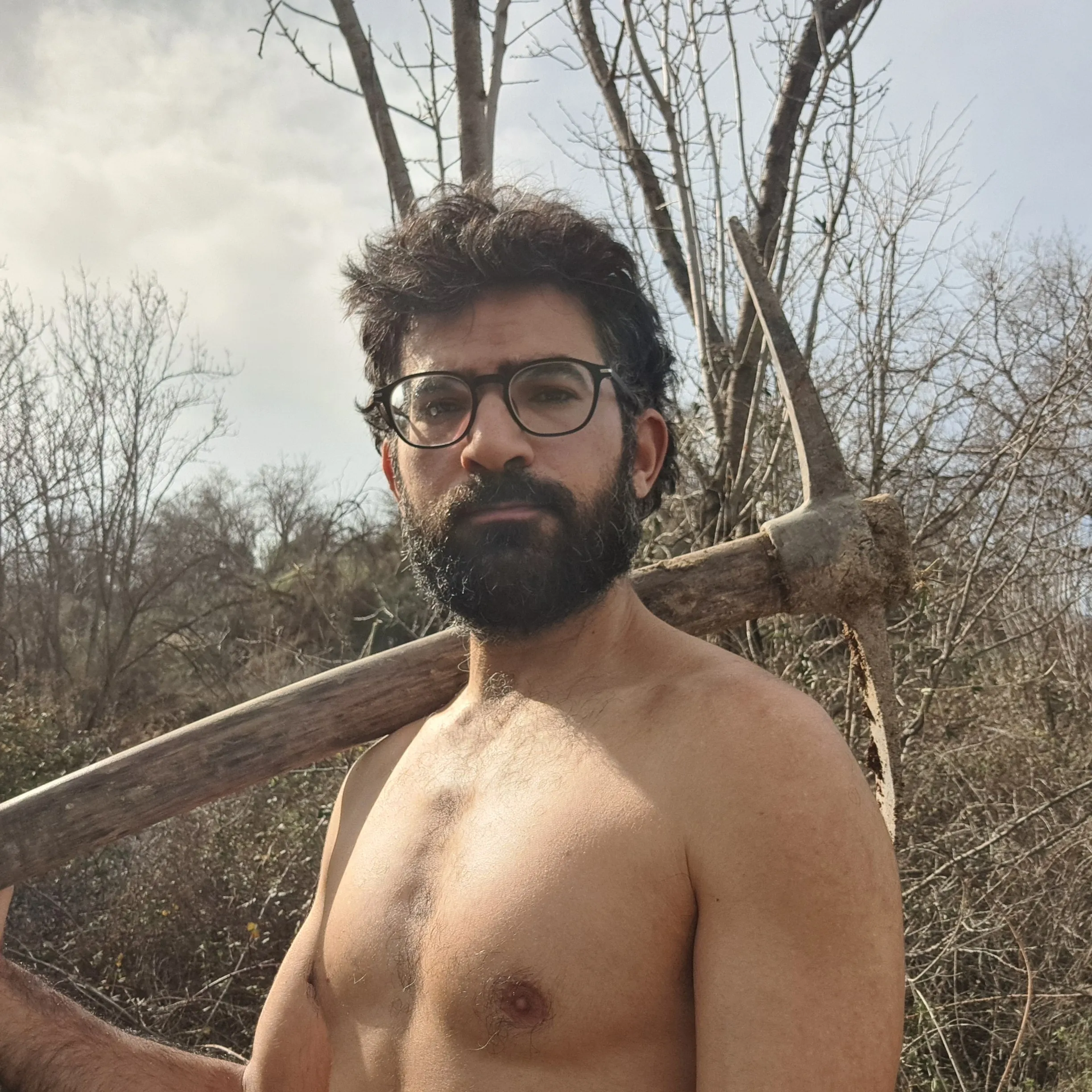 Click to enlarge Protesilaos pictured topless with some wild land in the background